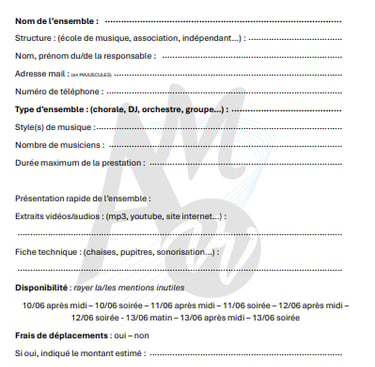 Les ensembles sélectionnés bénéficient de conditions techniques professionnelles (scène équipée, encadrement technique qualifié, accompagnement organisationnel), garantissant une expérience artistique exigeante et valorisante.